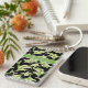 Un Keychain rectangular de bonito para personalizar, con un estilo Art Nouveau de Lilies-of-the Valley sobre un fondo negro; de la colección Posh & Painterly 'For the Love of Lilies'.
