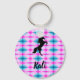 Black Horse Rearing Personalized Keychain - Diseño abstracto rosa y azul Aqua para el fondo. Hermoso caballo negro criando encima del nombre personalizado de su elección!