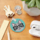 Tecla de botón ilustrada con un gato personalizado. Añade tu nombre de mascota o el tuyo en la parte superior para personalizar. Se puede cambiar el color de fondo. Otros estilos de gato disponibles en la colección I Love Cats.