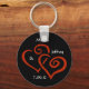 Red Entwined Hearts Keychain, sobre fondo negro con texto de personalizable, incluyendo fecha. Hace un gran favor de boda!!
