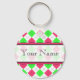 Cadena de teclas con fondo de argyle rosa y verde tilo caliente con adorno rosa caliente. Personalice su nombre en la sección central.
