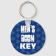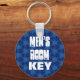 Este diseño de fondo azul con estampado y letras atrevidas a la moda es una cadena de claves práctica y elegante para la habitación de los hombres.