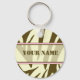 Una cadena de teclas con fondo de cebra marrón y beige y guarnecido rosa claro. Personalice su nombre en la sección central.