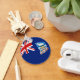 La bandera de las Islas Falkland ha sido ajustada hábilmente a la masa circular de esta cadena de claves. Un práctico recordatorio del patrimonio de las Malvinas.