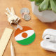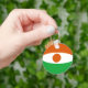 La bandera de Níger ha sido ajustada hábilmente al fob circular de esta cadena de claves. Un práctico recordatorio de la herencia nigerina.