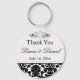 Esta cadena de claves de la boda damascal blanca y negra coincide con la invitación a la boda y otros elementos que se muestran a continuación. Se puede aumentar su tamaño a 2,25" de diámetro, o cambiarlo a una forma redondeada o cuadrada premium. Si necesita otros elementos, envíe un correo electrónico a niteowlstudio@gmail.com con su solicitud.