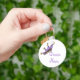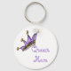 El texto púrpura y caprichoso dice Mamá de la Reina en esta cadena de llaves redondas blancas, con una corona morada estilo bufón completando este gran regalo del día de la Madre.