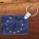 Cadena de claves con la bandera de la Unión Europea en diseño de tela ondulada. Este diseño presenta los colores y el diseño de la bandera de la UE con un hermoso efecto texturado de material ondulado.