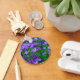 Pequeñas flores violetas con césped verde como fondo. Todos parecen un cuadro pintado.