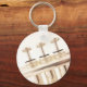 Keychain / llavero con foto de válvulas de corneta de plata contra fondo blanco.