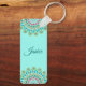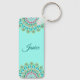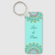 Personalice esta cadena de claves única de Mandala "Uno de los tipos". Cuenta con un hermoso diseño geométrico de Mandala, color turquesa, rosa y flor verde... sobre un fondo negro! Un Mandala es un símbolo espiritual y ritual... ¡Transformar el universo de uno de sufrimiento en uno de alegría y felicidad! Diseño gráfico por el artista Kerry Miller.