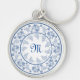 Una cadena de teclas redondeadas de bonito para personalizar con sus iniciales o su monograma, con un delicado patrón floral azul índigo en un fondo blanco que puede cambiar si lo desea. Este diseño, que forma parte de la colección "Indigo" de Posh y Painterly, se puede ajustar para que se ajuste a cualquier cadena Keychain redonda.