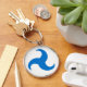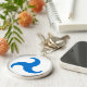 "(Sin Tierra) Un azul triskele." El color de fondo (mostrado blanco) se puede cambiar bajo petición.