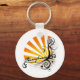 Las teclas y los botones de Pensilvania con el gráfico floral Sunny cuentan con un moderno patrón de ráfagas naranja con líneas florales y una sofisticada escritura a mano. Un diseño soleado hace que estas cadenas y botones únicos sean regalos lindos y a la moda.