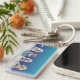 Una cadena de claves deliciosa para el amante del perro o padre mascota en tu vida. Un lado es un fondo de degradado azul y púrpura con tres crías traviesas mirando un carrusel de pasteles. El otro lado es un fondo de gradiente gris con un adorable cachorro maltipoo que tiene todos los dulces y sigue mirando el colorido pastel mientras que el Shih Tzu maltés solo tiene un dulce para él.