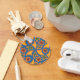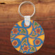 Una elegante cadena de claves con un patrón islámico tradicional, de una imagen de Judy Adamson. Las estrellas y las formas geométricas están decoradas en tonos verdes, rojos profundos y amarillos dorados y delineados en naranja sobre un fondo azul brillante.