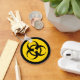 Símbolo universal de riesgo biológico en negro sobre un fondo amarillo de precaución.