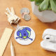 El loco personalizado flyball dog azul tiene una pelota de tenis amarilla agarrada en los dientes mientras mueve los brazos alrededor. Debajo se puede leer, "Fanático de bola de volante". ¡Corta cadena de balonmano!