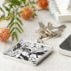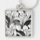 Llavero Keychain floral de estilo Art Deco blanco y negro