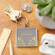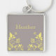 Keychain floral premium floral de mariposa dulce y delgada con un fondo gris turbio y mariposas amarillas claras y adornos de viñas florales. Este elegante fob con llave floral es una encantadora elección para mantener las llaves a mano con un toque de circunferencia. Fácil de personalizar, simplemente agregue el texto personalizado de su elección en los campos de texto proporcionados. Haga clic en el botón "Personalizar" para encontrar opciones de personalización adicionales.