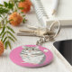 Esta encantadora cadena de teclas de botón, tirada por la cremallera, presenta un bonito y ondulado Gris y un martillo blanco que sostiene una flor sobre un fondo gris claro. Un bonito regalo o un relleno de medias.