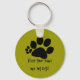La huella con siete dedos de los pies, con el texto "¡Mantén tus garras fuera de mis llaves!" es el texto rasgado debajo de la huella de una pata de gato polidáctilo. Personalizar/edite el color de fondo a su elección.