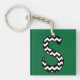 Una cadena de teclas muy elegante con la 'S' inicial en un patrón de chevron en blanco y negro. El fondo mostrado es verde oscuro, pero puede elegir entre una amplia selección de colores de fondo utilizando el botón Editar. También puede elegir un tipo o forma diferente de Keychain o rotar el inicial para un mejor ajuste - ¡diviértete con él!