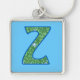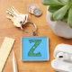 Una Keychain muy bonito con la inicial 'Z' en un patrón multicolor azul floralazul y verde 'Periwinkle' en un fondo azul cielo. Puede cambiar fácilmente la forma y el tamaño de la cadena de claves, así como el color de fondo (utilizando el botón Editar). Y si ves uno de mis otros patrones que prefieres, por favor contacta conmigo a través de mi tienda y crearé uno sin costo adicional.