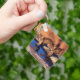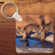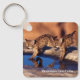 Keychain se muestra con una foto impresa de lindos cachorros de león de montaña. Personalizar este artículo o compra tal cual. Imagen de stock