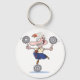 Este diseño es un hombre que balancea cogs. El hombre está parado sobre un cerdo y sosteniendo dos. Este hombre balanceando el diseño de los cogs se ve muy bien en esta Keychain