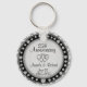 Monograma de la cadena plateada con 25 años y dos corazones en forma de círculo rodeados de diamantes.