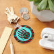 ¡Esta es una cadena única de "One of a Kind" (uno de los tipos) en el suroeste de la tribu de los osos paw! Cuenta con una ruta de oso tribal nativo americano, que representa protección y buena salud en un fondo turquesa... ¡Rodeado por un borde turquesa, Naranja y negro del suroeste! Este es un Diseño de Arte Gráfico Original del artista Kerry Miller.