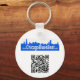 blue logo and calendar QR scan code on a key chain