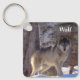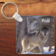 Cadena de claves mostrada con una foto impresa de un lobo salvaje. Personalizar este artículo o compra tal cual. Imagen de stock