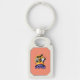 Este llavero con temática de Halloween presenta un diseño espeluznante con una gran luna amarilla, murciélagos voladores, un esqueleto vestido como un fantasma, una lápida con la leyenda "RIP" y varias calabazas talladas. El texto "Halloween feliz" se muestra de forma destacada en la parte inferior.