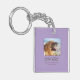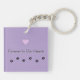 The back continues the remembrance with Forever in Our Hearts in bold black Futura, highlighted by a lilac heart above and a small trail of paw prints below. Thoughtful, modern, and full of love, this keychain offers a beautiful way to honor her spirit while supporting mast cell tumor awareness.