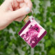 Llavero KITTEN CON ROSAS, Rosa Fuchsia Blanca