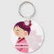 muñeca kokeshi con un kimono rosa con detalles de la flor de cerezo. La floración del cerezo es un presagio de buena fortuna y también es un emblema del amor, el afecto y representa la primavera.