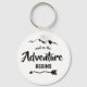 The Adventure Begins trendy keychain. Nuestra montaña hecha a mano con fuentes modernas y nuestra flecha hecha a mano rodean la cita positiva "y así comienza la aventura". Puede personalizar del color de fondo.