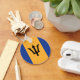 La bandera nacional de Barbados fue oficialmente adoptada el 30 de noviembre de 1966, el primer Día de la Independencia de la isla. Se compone de una tribanda de dos bandas de ultramarina separadas por una banda intermedia dorada. Una cabeza de tridente negra (comúnmente llamada el "tridente roto") se centra dentro de la banda dorada. La bandera fue diseñada por el profesor de arte local Grantley Prescod, y fue elegida de alrededor de 1000 diseños luego de un concurso a nivel de toda la isla. Se dice que las dos bandas azules representan el océano, mientras que el oro es para la arena de la isla. El tridente se toma de la antigua insignia colonial, que mostraba a Britannia sosteniendo un tridente, la parte baja rota simboliza un quiebre simbólico con sus lazos históricos y constitucionales como una antigua colonia[1]. Los tres puntos del tridente representan los tres principios de la democracia: el gobierno de, por y por el pueblo.
