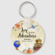 Llave de la ducha nupcial del viaje: llavero de la aventura. Diseño floral vintage de maleta globo avión pasaporte acuarela.