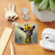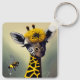 La cadena de claves cutáneos presenta una pintura surrealista generada por IA de una gigantesca jirafa transformada en abejorro.