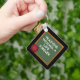 Pizarra de tiza verde de la vieja escuela con un marco de madera con una manzana roja en la esquina, la redacción - en un estilo impreso a mano, ENSEÑANDO TOCA UNA VIDA PARA SIEMPRE. Personalice la parte posterior con su nombre o mensaje. El fondo se muestra en negro, que puede cambiarse a cualquier color que prefiera. El tipo de letra, el color y el tamaño de la parte posterior de la personalización también se pueden cambiar para adaptarse. **Diseñado para cadenas de teclas cuadradas.