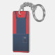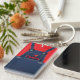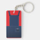Un diseño gráfico de los overoles de un bib del artista/diseñador Charmaine Paulson en una cadena de llaves.