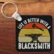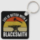 La Vida Es Mejor Con Un Herrero. Este cómplice vintage de citas es un gran regalo de herrero para cualquiera que sea herrero y ame la falsificación y el metalurgia. Si te gusta prender fuego en tu garaje o cobertizo, y eres herrero, metalero, farriero o afinador, y te encanta trabajar con metalizado falsificado, ¡entonces este diseño es para ti! Muestra un gráfico angustiado de un martillo y un yunque.