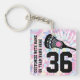 Cadena de claves plásticas de Lacrosse personalizada con un diseño único de tinte rosado, impreso por personalizado con su nombre, año, nombre de equipo, escuela o puesto, y número jersey.