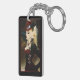 Una rubia de Steampunk, todo hecho de rojo y negro con un pequeño amigo hecho de engranajes y resortes en su hombro.