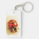 Esta cadena acrílica de la naturaleza tiene una pichón, (Coccinellidae) también conocida como el ladybird, dama vaca o escarabajo, con colorante rojo, naranja y amarillo y manchas negras. Este insecto es un famoso amigo del jardinero que se alimenta de áfidos y otras plagas de jardín.