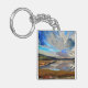 Diseño artístico de un lago con el dramático cielo reflejado en el agua del lago. Las colinas y los campos rodean el lago.