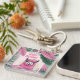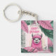 Pink Happy Smiling Lama, este diseño presenta un lindo y adorable Lama sonriente Rosa Happy Sonriente rodeado de palmeras verdes y flores tropicales rosas.